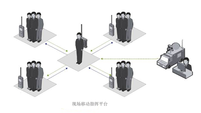 现场安保指挥:当出现突发状况时,通过设备对现场周边警力进行指挥调度。并具备连接多制式、多频段的通信系统的能力,方便应对现场复杂的情况。